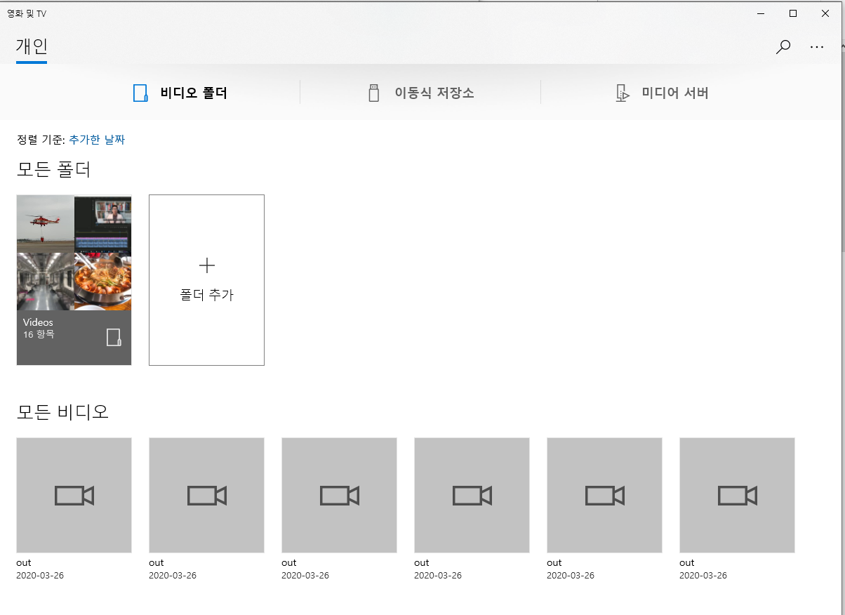 한번 실행을 하면 아래처럼 "영화 및 TV" 앱이 뜬다.