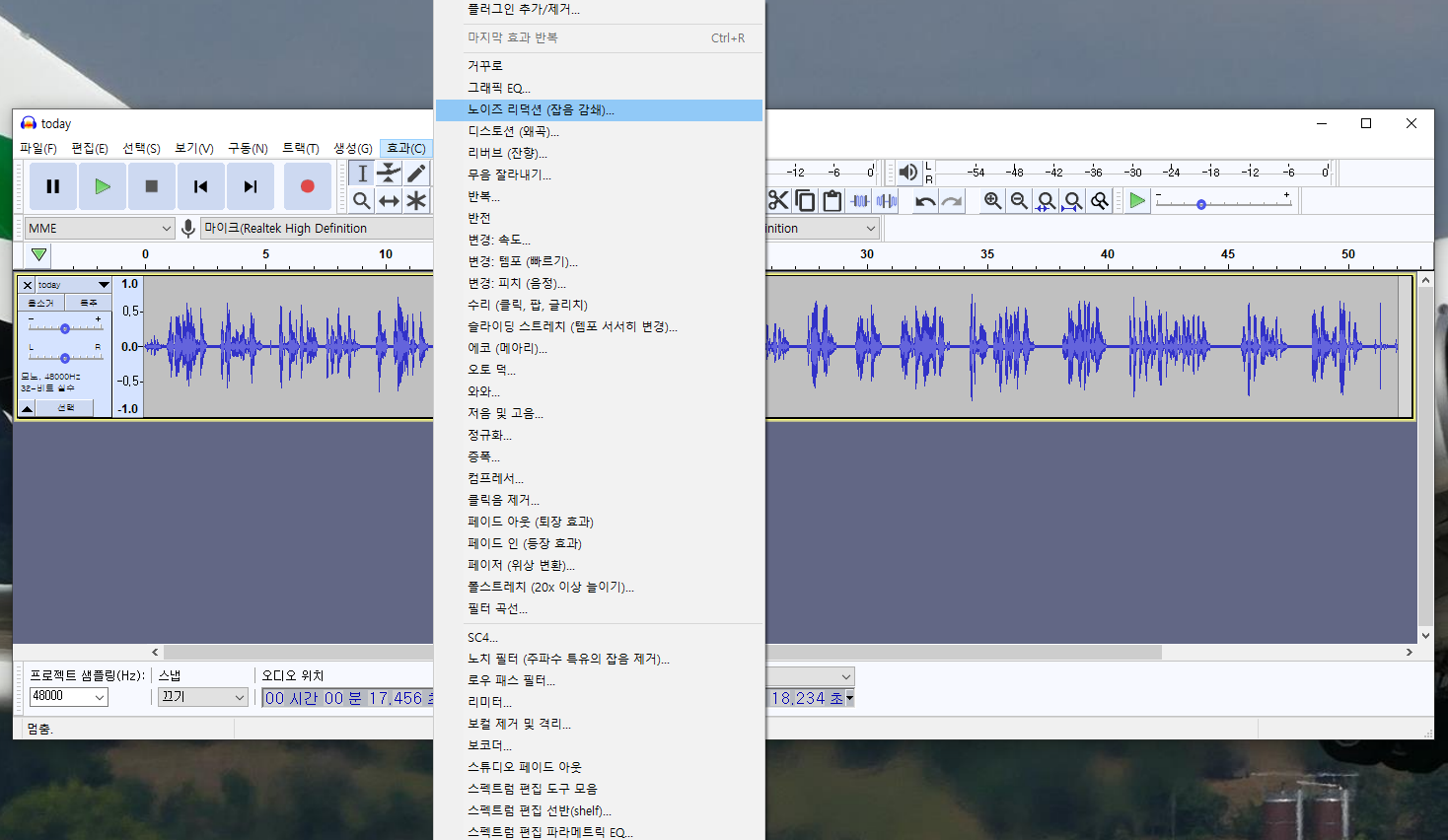 여기까지 하면 Audacity의 역할은 끝났습니다.