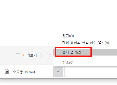 여기서 우측에 화살표를 누르고 폴더열기를 누르면 아래처럼 해당파일이 저장된 폴더가 열립니다.