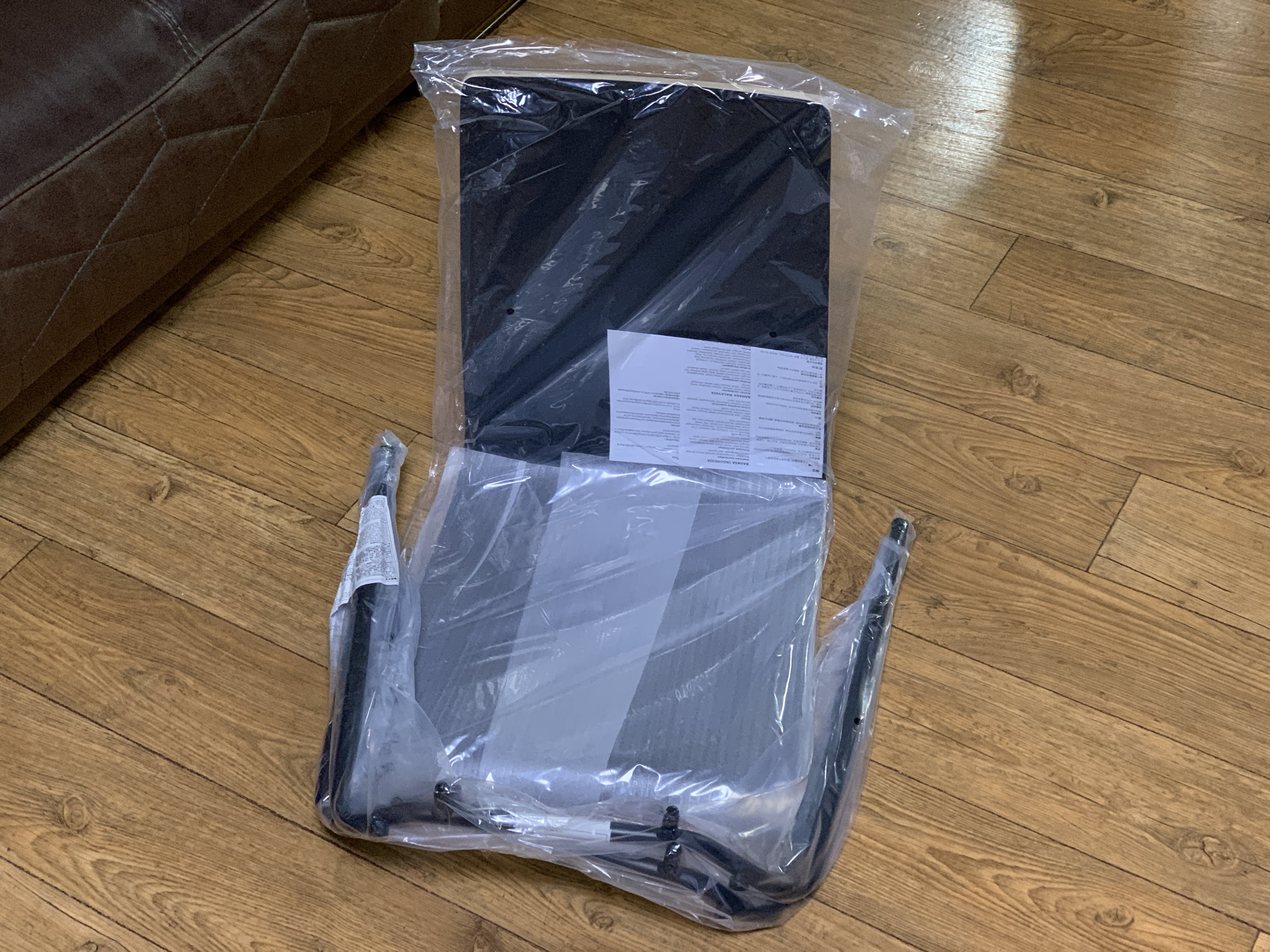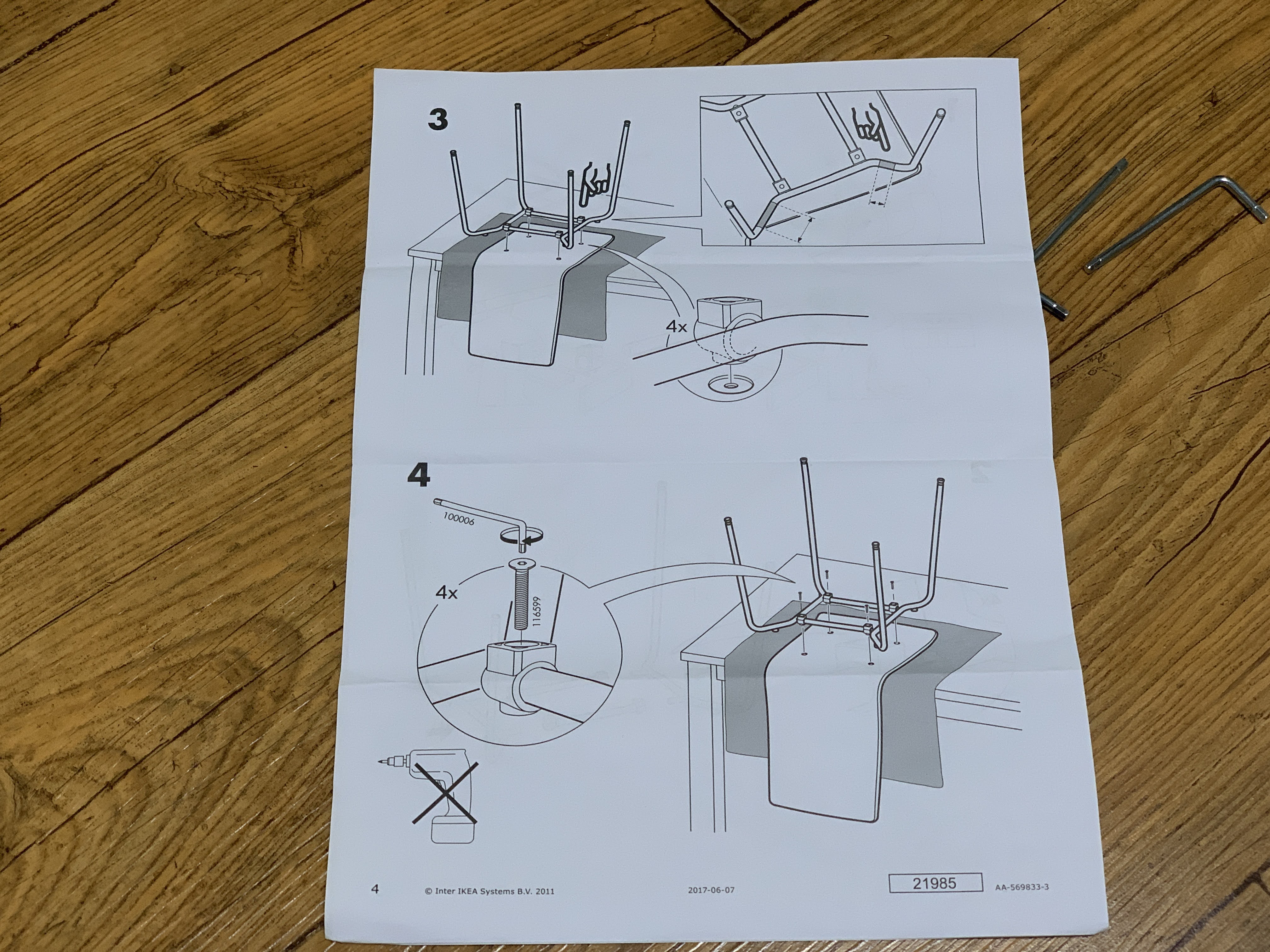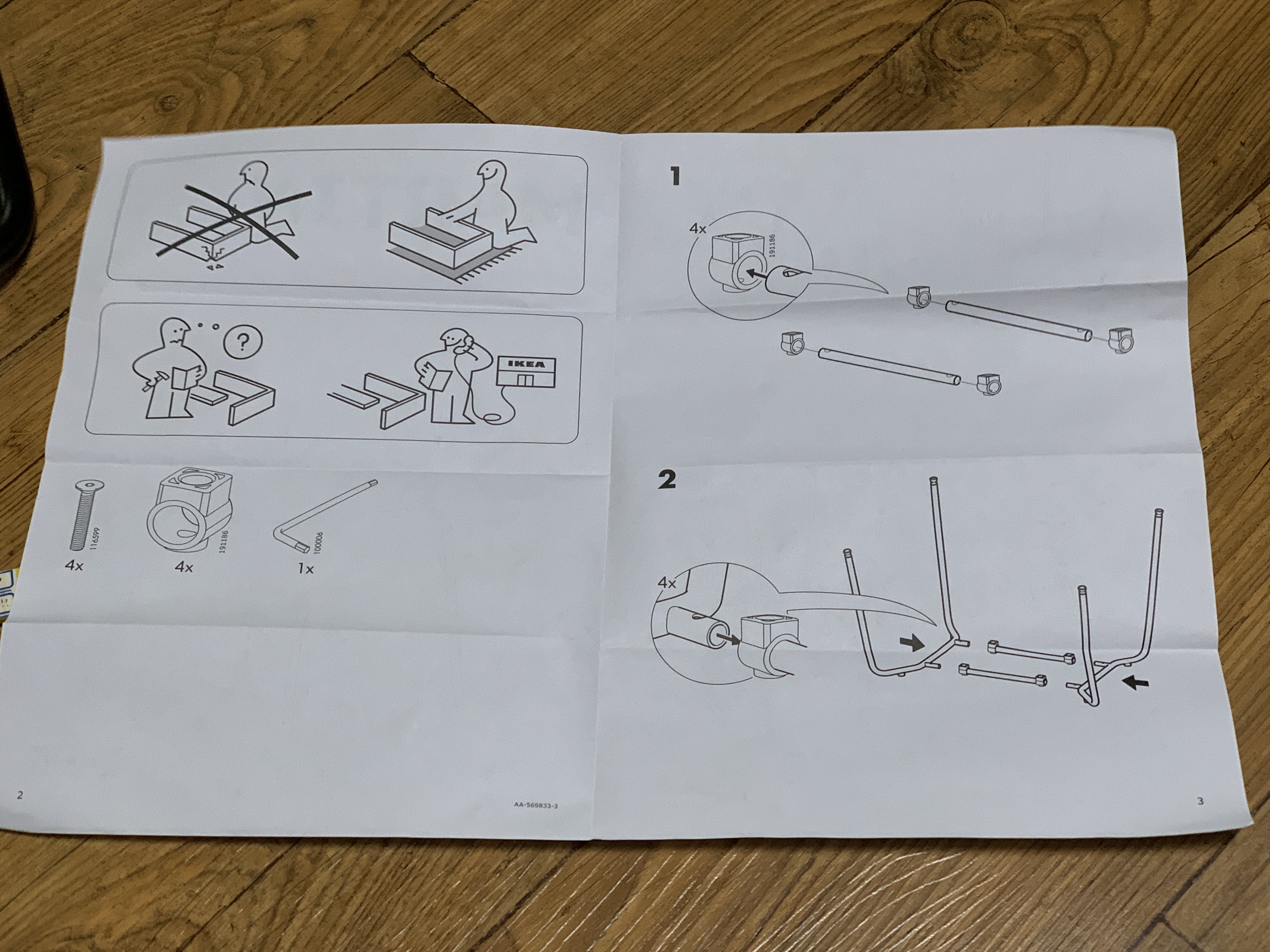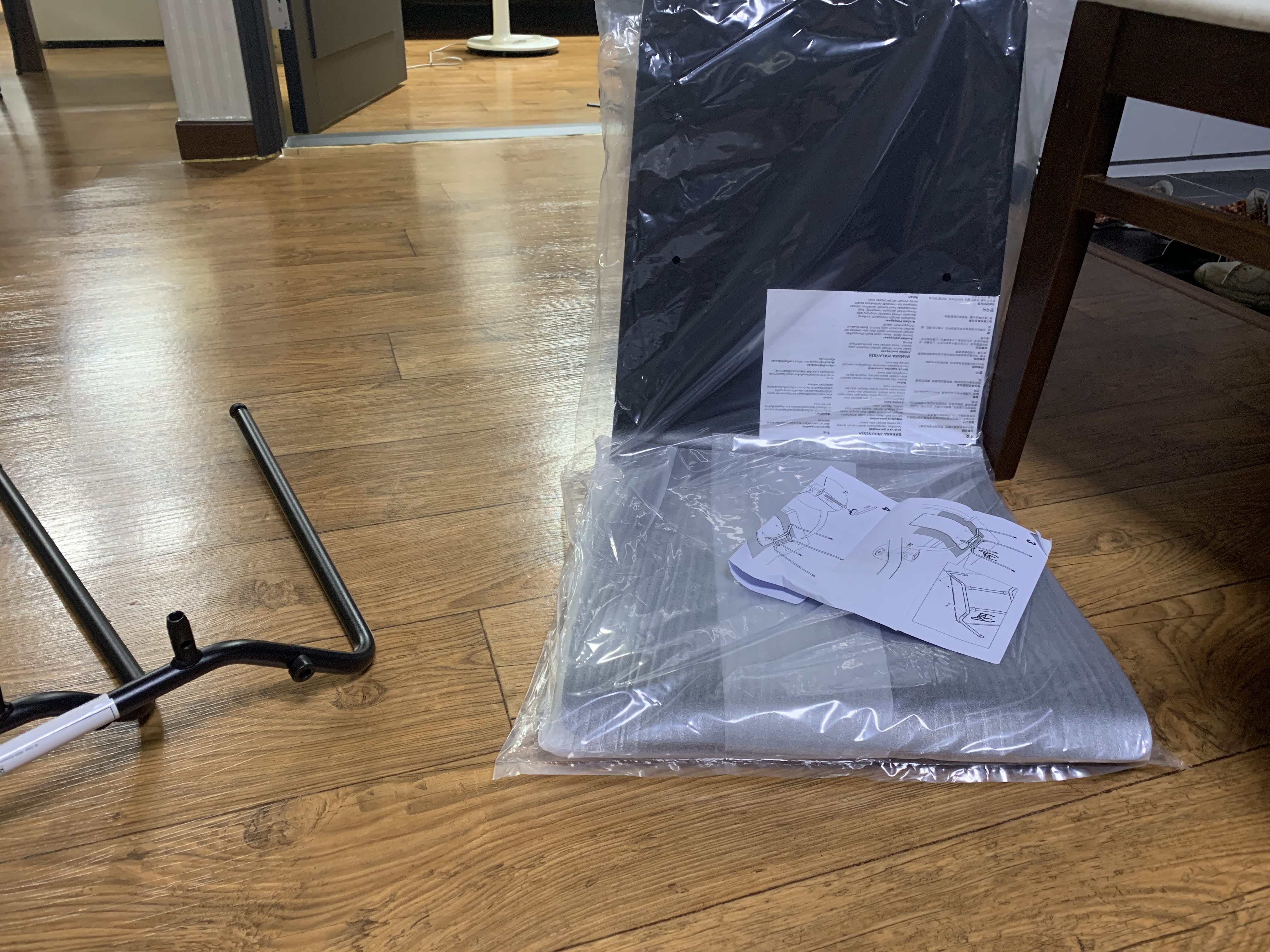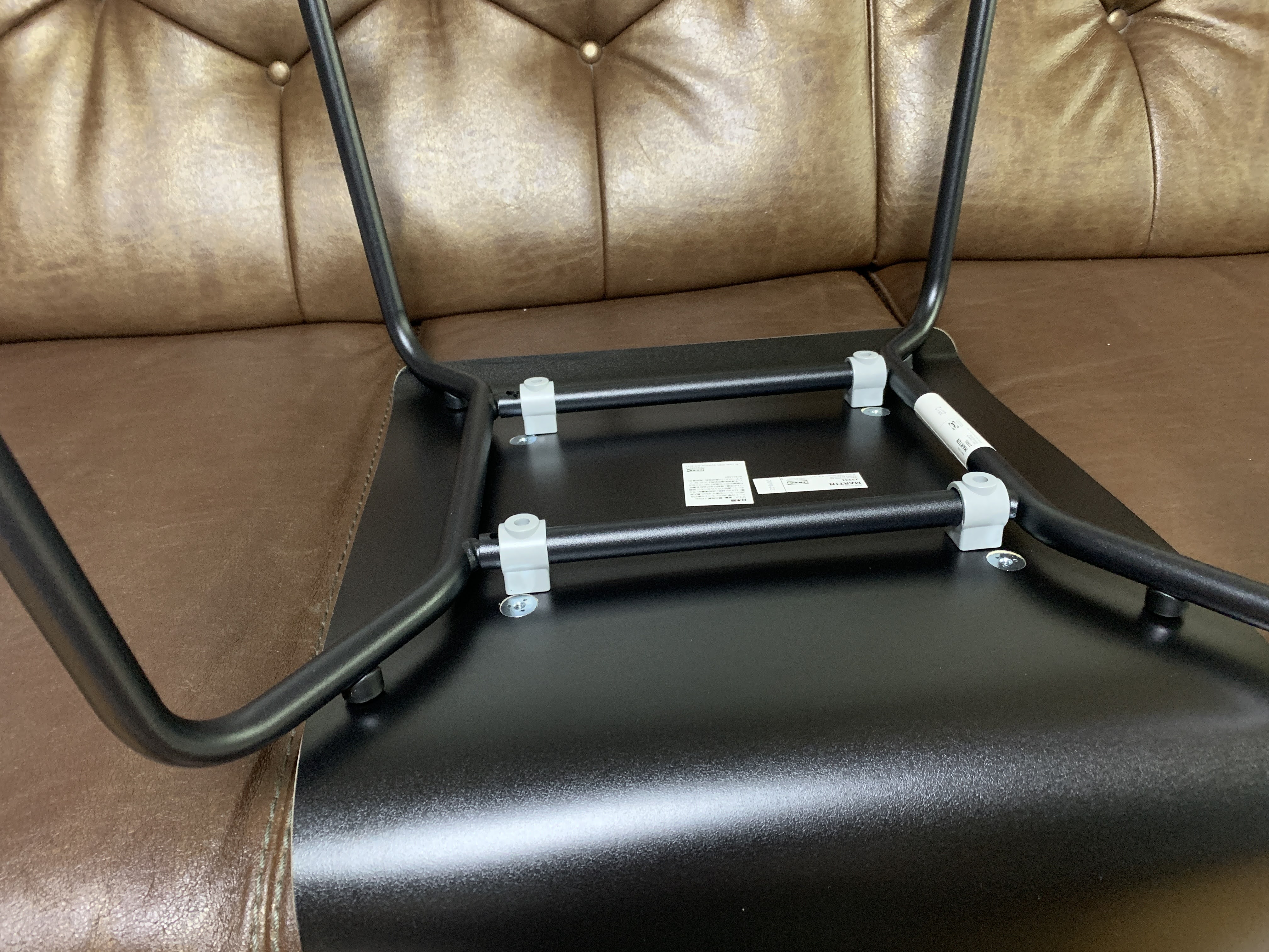 조립할 때 의자를 뒤집어서 다리를 끼우라는군요.