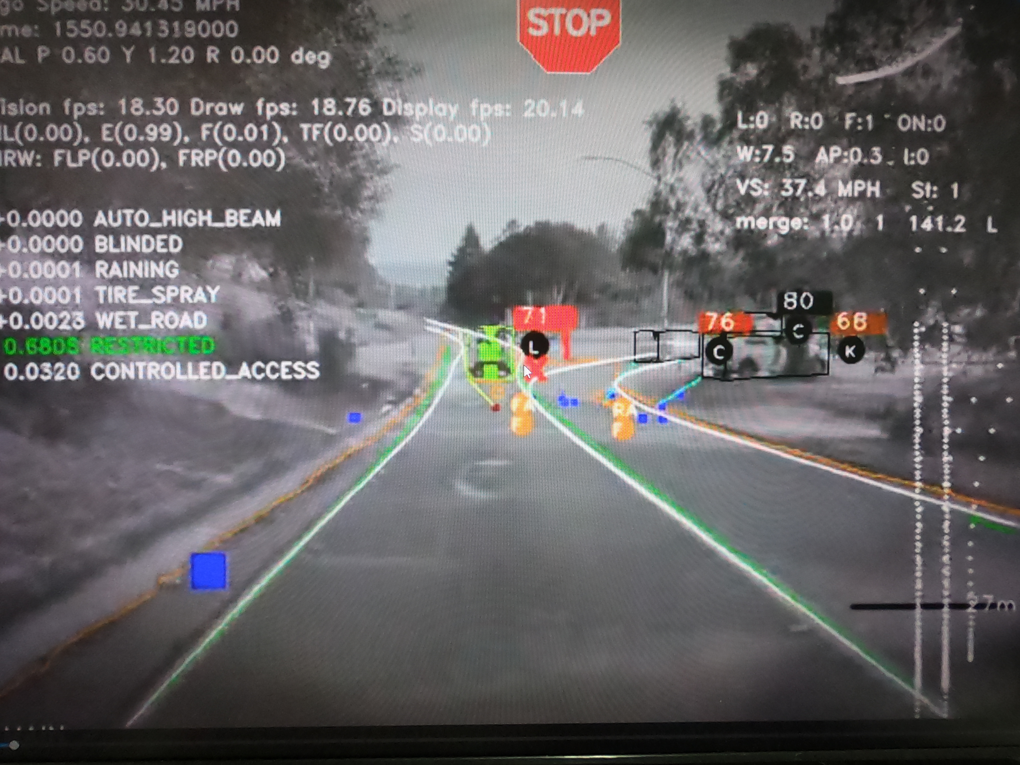 2018년1월에 미국 CA(캘리포니아)에서 테슬라 모델S가 고속도로 비상도로에 정차중인 소방차를 시속 80키로로 충돌 했으나 운전자는 무사했다고한다. 이 때 운전자는 베이글과 커피를 마시면서 운전에 집중하지 않고 있었고, 자동차는 앞차를 따라 주행중 충돌 3초전에 앞차는 정지해있던 소방차를 가까스로 피했으나 전방을 보고 있지 않았던 테슬라 운전자는 그대로 충돌하였다. 이때 충돌 0.5초전에 충돌경보가 울렸으나 자동차의 비상정지 시스템은 작동하지 않았다.
