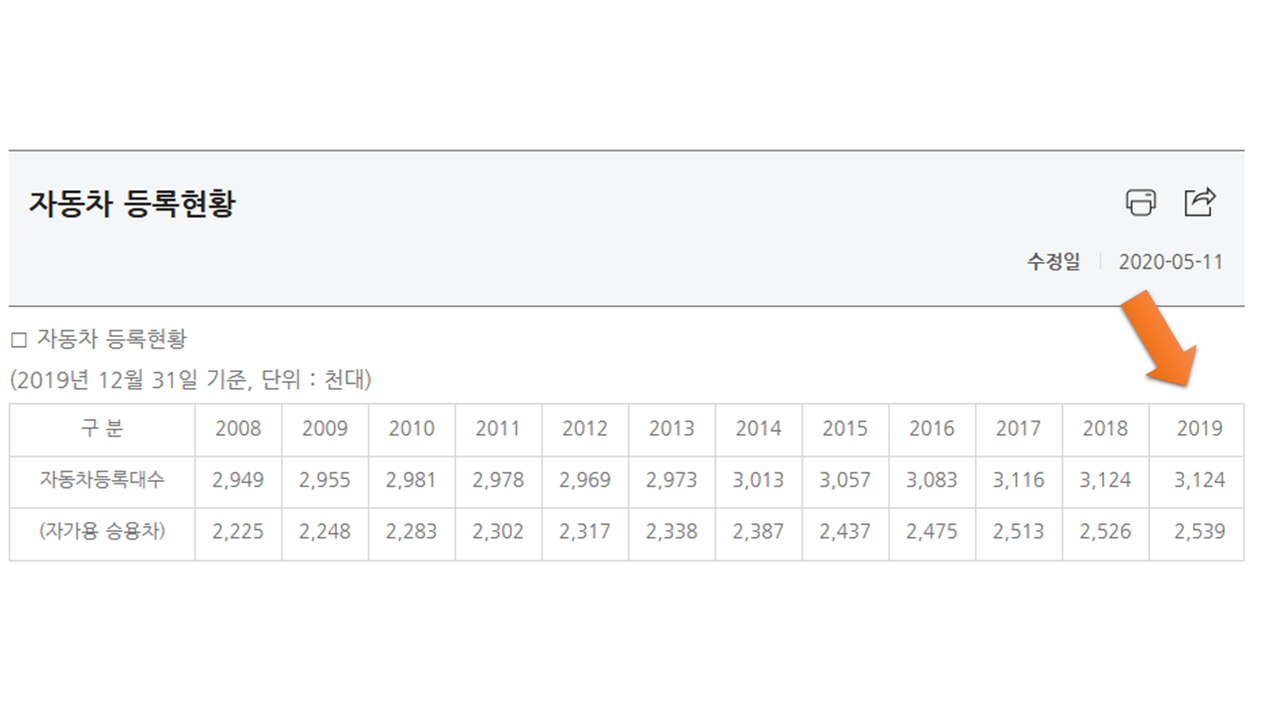 2019년 기준으로 서울시의 경우 자동차 등록현황을 보면 312만대정도가 등록되어있다고 한다.