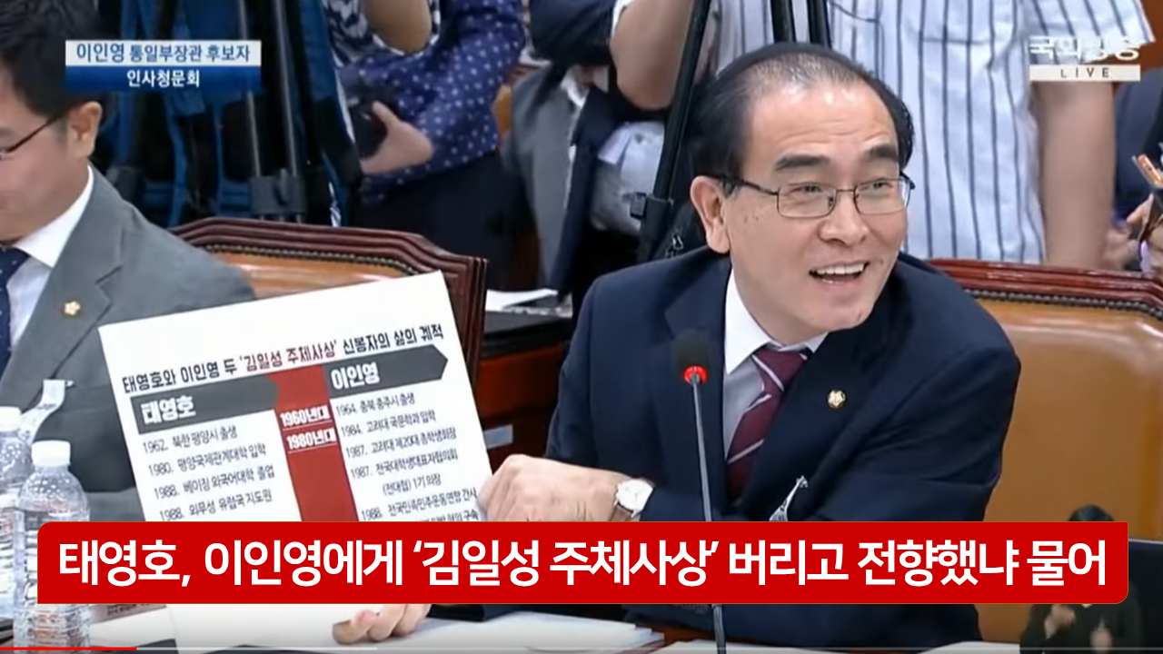 "전향이라는 것은 태 의원님처럼 북에서 남으로 오신 분에게 전형적으로 해당하는 거 아니겠습니까?"