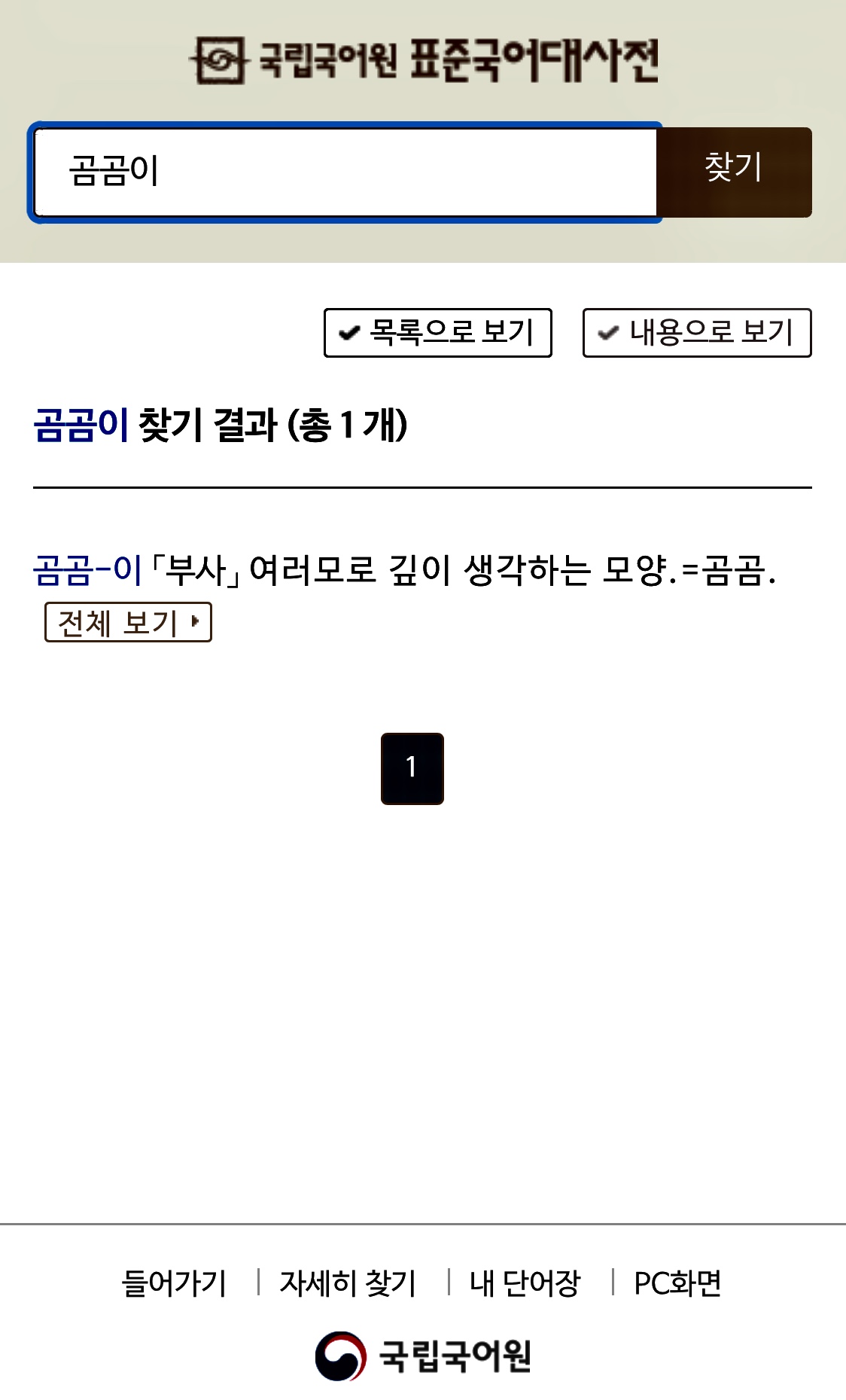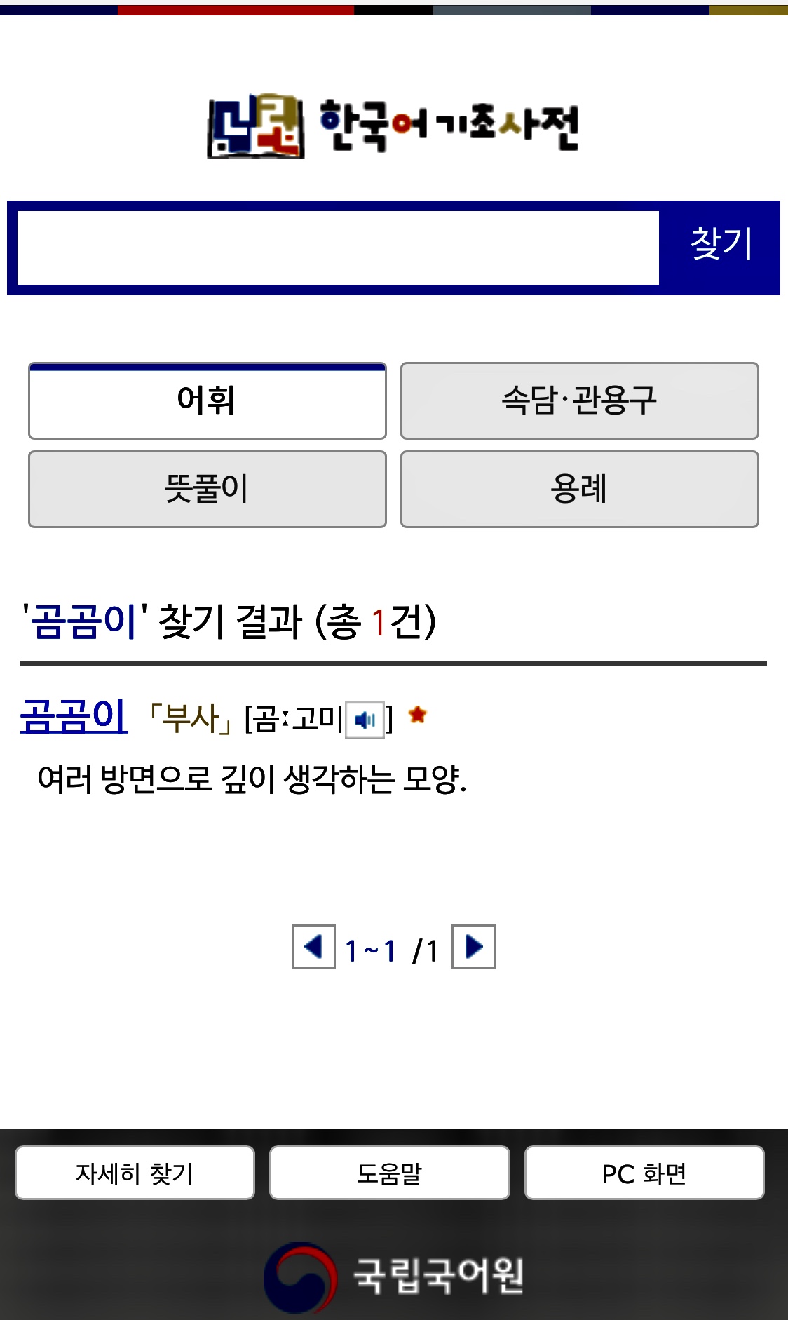 국립국어원의 표준국어대사전을 찾아보자