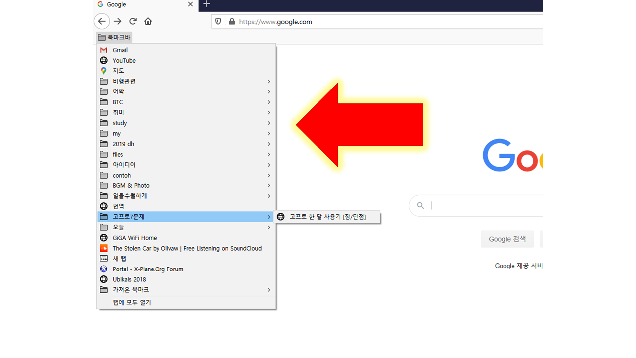 이제 북마크바를 눌러보면 원래 크롬에서 쓰던 북마크가 밑으로 쭉 열리는 것을 볼 수 있습니다.