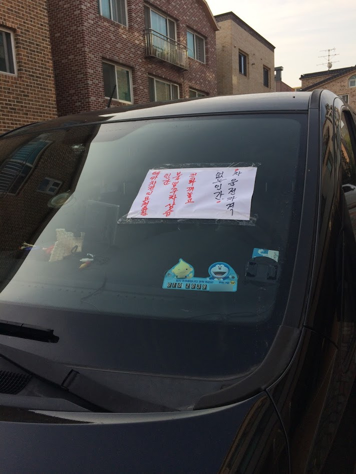 매너없는 불법주차 차주에게 붙인 깊은 빡침의 흔적