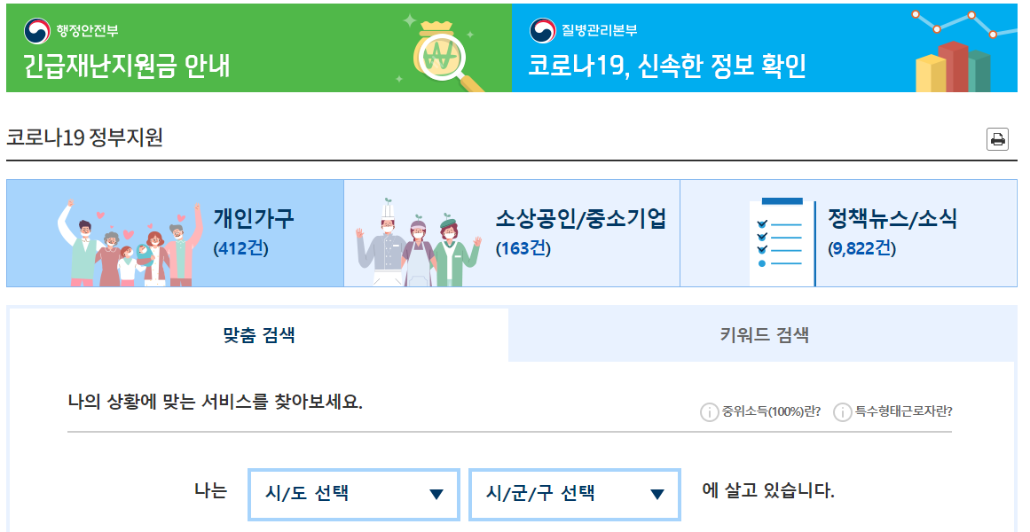제2차 재난지원금에 대한 논의가 완료되면 각종 뉴스와 카드사 문자등으로 지급대상자에게 연락이 가게되겠지만, 미리 정부 재난지원금 홈페이제 접속해서 확인해보시는 것도 좋은 방법입니다. 그리고 정부 재난지원금 외에 "코로나19정부지원"이라는 제도도 있으니 아래 이미지를 클릭하시면 코로나19정부지원에 대해서 보실 수 있습니다.