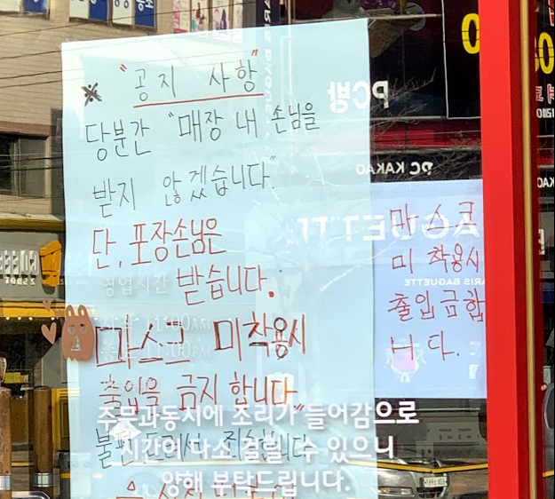 확진자가 10명 대입니다. 그중에 해외유입 확진자가 90% 입니다. 하던 뉴스가 어느새 2~3백명 수준으로 늘어나면서 사회적 거리두기는 2단계로 격상되었고, 3단계까지 할지도 모른다는 말이 연일 나오고 있습니다. 대구에서 확진자가 늘어날 때와 다른점은 깜깜이 확진자가 늘어나고 있다는 것인데, 카페에서도 걸릴 수 있고, 식당, 대중교통, 학교 같은 사람들이 많이 모이는 곳에서는 감염에 대한 공포가 점점 커지고 근처에 있는 식당들도 다시 문을 닫고 있습니다.