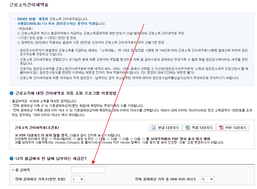 간이세액표(조견표) (한글, excel 및 pdf 다운로드)