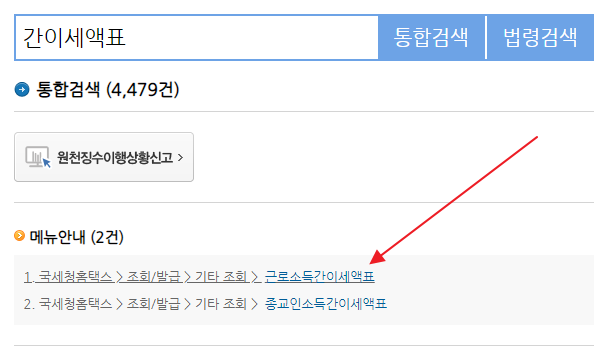 그리고 통합검색을 누르면, 근로소득간이세액표 가 나옵니다.