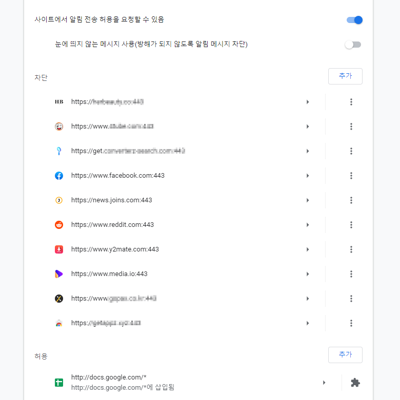 그러면 아래처럼 그동안 허용한 사이트들이 뜹니다.