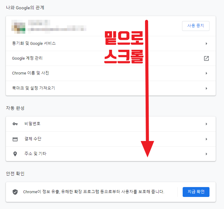 나와 구글의 관계 이런게 나오는데 밑으로 조금만~ 스크롤 합니다.