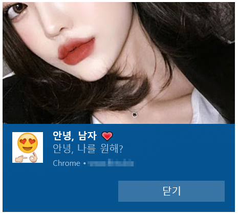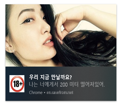 크롬 브라우저의 경우에 홈페이지에서 사용자에게 알림을 보낼 필요가 있을 때를 대비해서 그 홈페이지에서 알리는 알림을 윈도우로 받을 수 있는 기능이 있습니다. 이 기능을 적당히 진짜 필요할 때 사용하면 좋을텐데, 악용을 해서 보기 민망한 광고를 송출하는 홈페이지가 있습니다. 그러면 이 광고를 삭제하는 법에 대해서 알아보겠습니다.