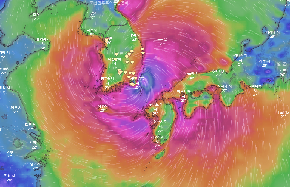 초강력 태풍 하이선이 원래 예상 되었던 한국통과 경로에서 일본쪽으로 방향을 틀면서 일본 서남부 지역의 긴장이 고조되고 있습니다.