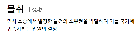 위에 캡쳐한 뉴스를 보면, 전광훈 목사가 보석신청을 해서 구류상태에서 풀려있었는데 이번에 어떤 이유로 인해서 다시 보석이 취소 되었다는 내용과 함께 몰취라는 단어가 나옵니다.