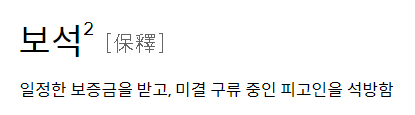 보증 석방의 약자로, 석방 보증금을 내거나 석방 보증인을 세우고서 구류상태(구속상태)에서 풀려나 불구속으로 조사를 받는 것을 말합니다.