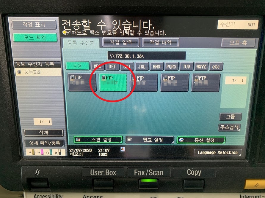 또 하나는, 스캔을 각자의 컴퓨터로 바로 보낼 수 있어서 상당히 편리한데요.