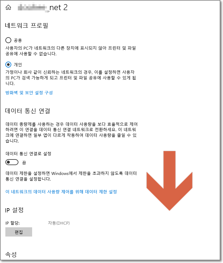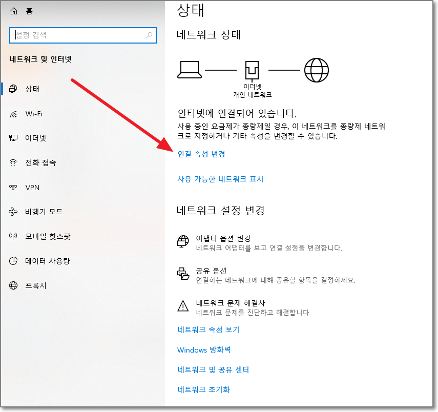 "연결 속성 변경"을 클릭합니다.