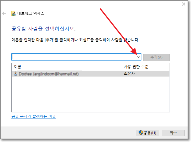 이제 "고급공유"를 누릅니다.