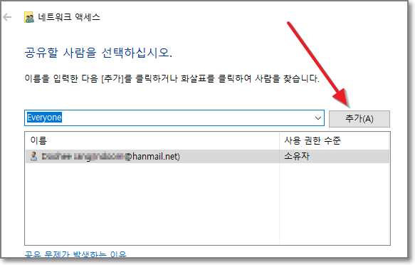 Everyone이 파란색으로 선택이 되어있는 상태에서 오른쪽에 "추가"를 누릅니다.