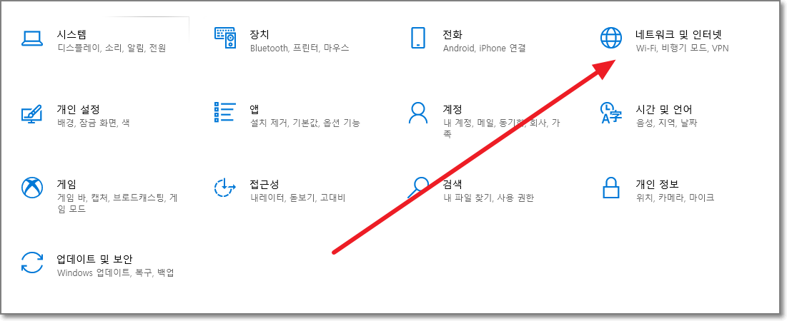 다시 제어판으로 들어가서 이번에는 "네트워크 및 인터넷"을 누릅니다.
