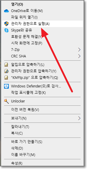 이번에는 두번째 파일 FTP Utility Settings 를 실행합니다. 역시 마우스 우버튼으로 "관리자권한으로 실행"을 합니다.