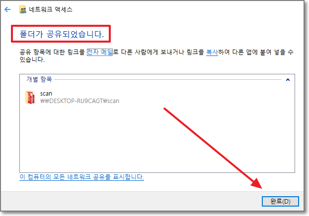 폴더가 공유되었습니다. 라고 나오지요? 밑에 있는 "완료"를 누릅니다.