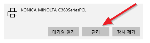 KONICA MINOLTA C360SeriesPCL 의 메뉴중에 "관리"를 클릭합니다.