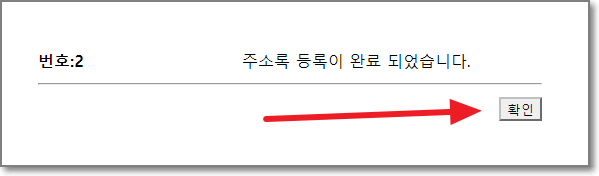 번호 2번으로 주소록 등록이 완료되었네요. "확인"을 누릅니다.
