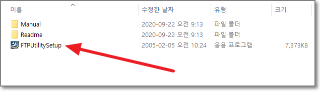 다운로드 받아서 압축을 푸시면, 다음과 같이 나오는데, 바로 FTPUtilitySetup을 눌러서 설치합니다.