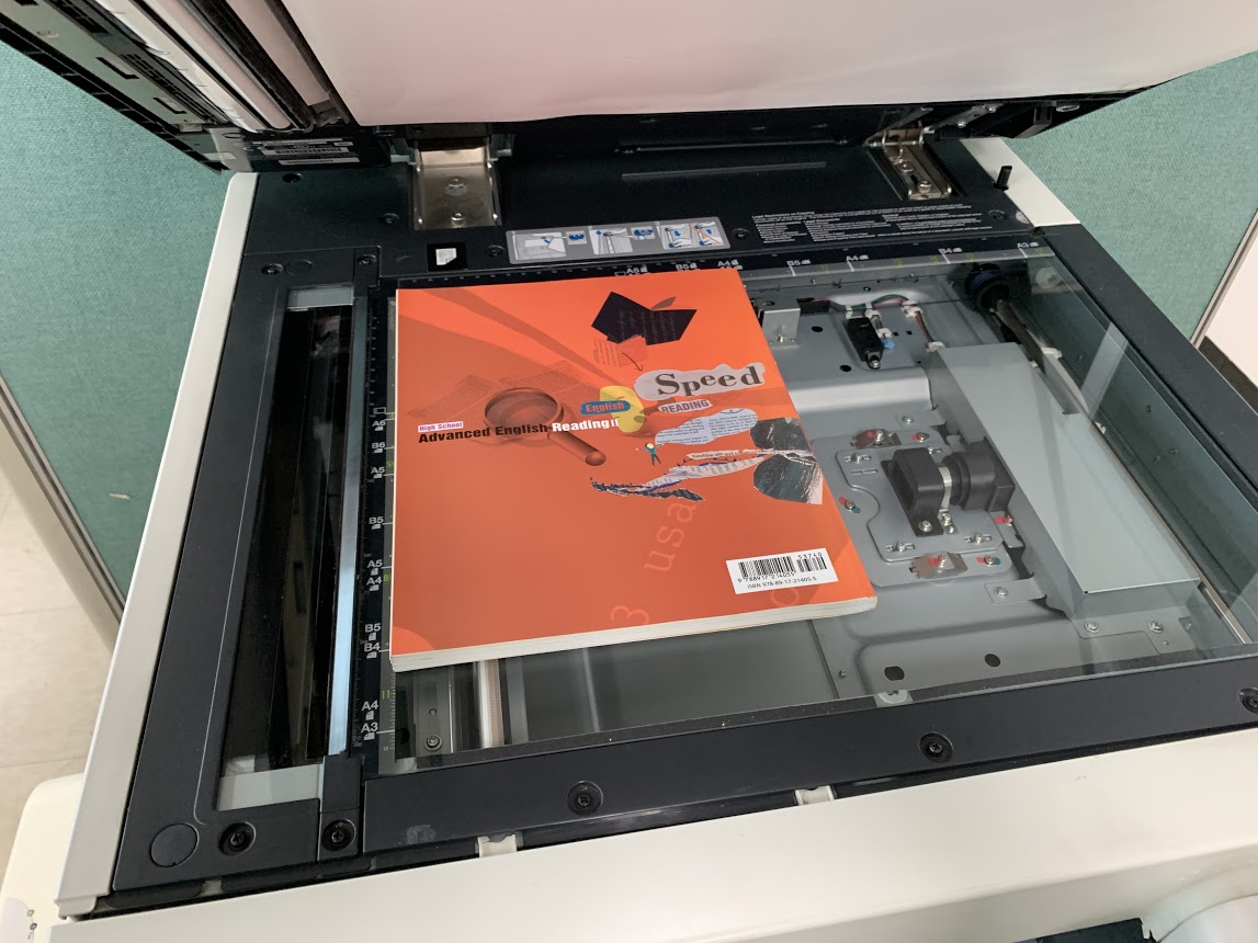 그리고 적당한 스캔할거리를 들고 KONICA MINOLTA 로 가서 스캔 평판위에 스캔할거리를 올려놓습니다.