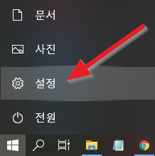 윈도우10 "시작"을 누르고 위에 있는 톱니바퀴(설정)를 누릅니다.