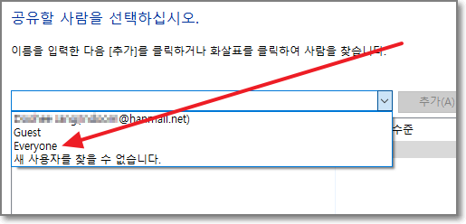 이름쪽에 Everyone이 이미 있으면 여기는 건너뛰어도 되지만 Everyone이 없다면 아래 화살표처럼 빈칸오른쪽에 꺽쇠를 클릭합니다.
