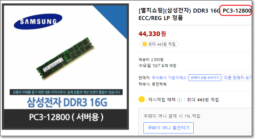 이 컴퓨터의 경우 램을 추가로 끼우려면 아래 사진처럼 PC3-12800짜리를 구매해서 확장해야 합니다.