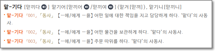 국립국어원의 "우리말 샘"에서 맡기다를 찾아보면,
