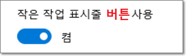 작은 작업 표시줄 단추사용을 켜고 끄기