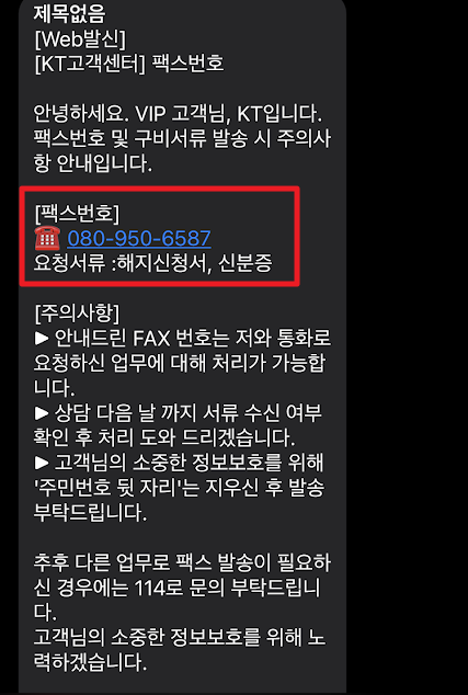 그리고 팩스로 전송한 서류를 어떻게 작성해야 하는지도 자세하게 문자로 보내주었습니다.