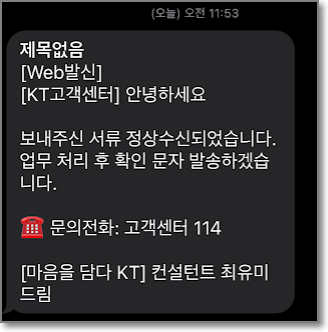 잘 받았고, 정확히 업무처리 후에 결과에 대해서 안내 메시지를 준다고 합니다.
