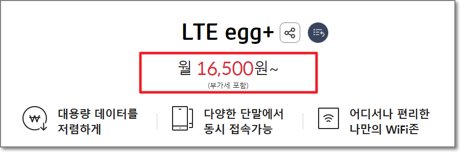그 이후로 이제 또 2년이 흘러서 5500원씩 내던 에그 요금이 2020년 10월부터 15400원으로 오르더니 이번달 11월에는 16500원으로 LTE egg+11 요금제로 바뀌게 되었습니다.