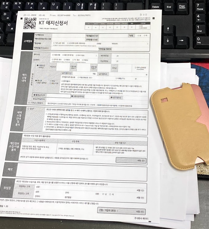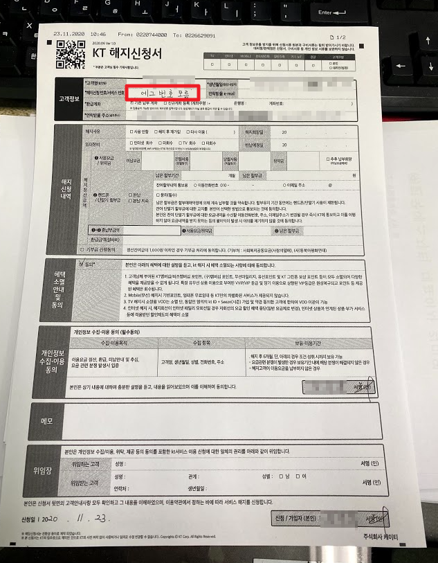두번째는 해지서류를 팩스로 보내줄테니 작성해서 신분증과 작성한 해지서류를 보내라 였습니다.