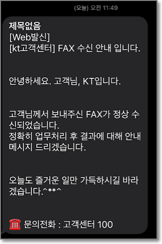 혹시 팩스 온걸 모를까봐서 문자로도 팩스발송 사실을 한번 더 알려주더군요.