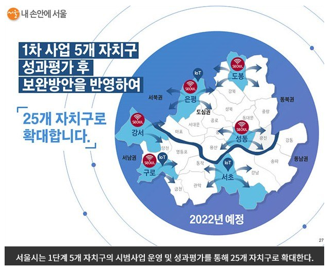 현재는 5개 자치구(성동구, 도봉구, 은평구, 강서구, 구로구)에서 시범 서비스를 보이고 있는 까치온은 서울시의 모든 시민이 통신기본권을 누릴 수 있도록 하기 위해서 2021년까지 공공생활권 전역에 구축을 하기로 했습니다.