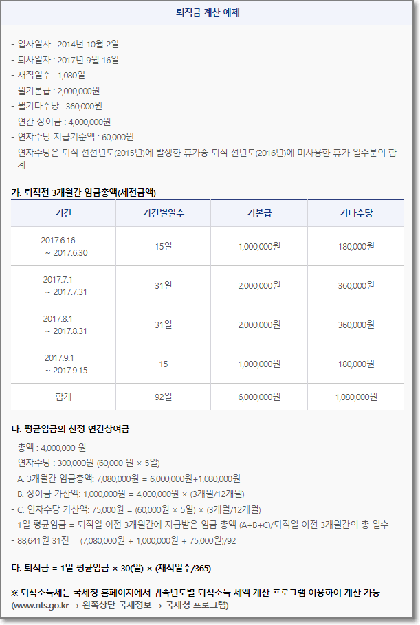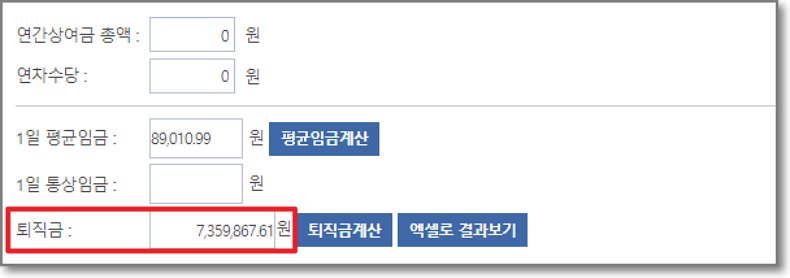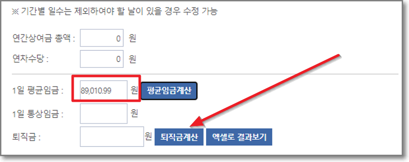 퇴직금 계산기 사용방법