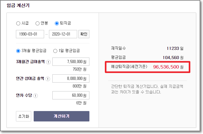 퇴직금 계산기