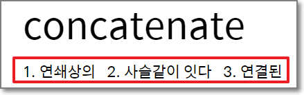 "컹케터네이트"라고 발음하는 이 영어단어는 "사슬같이 연결된"이라는 뜻입니다.