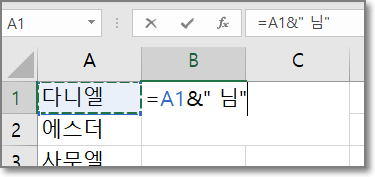 엑셀 문자 합치기