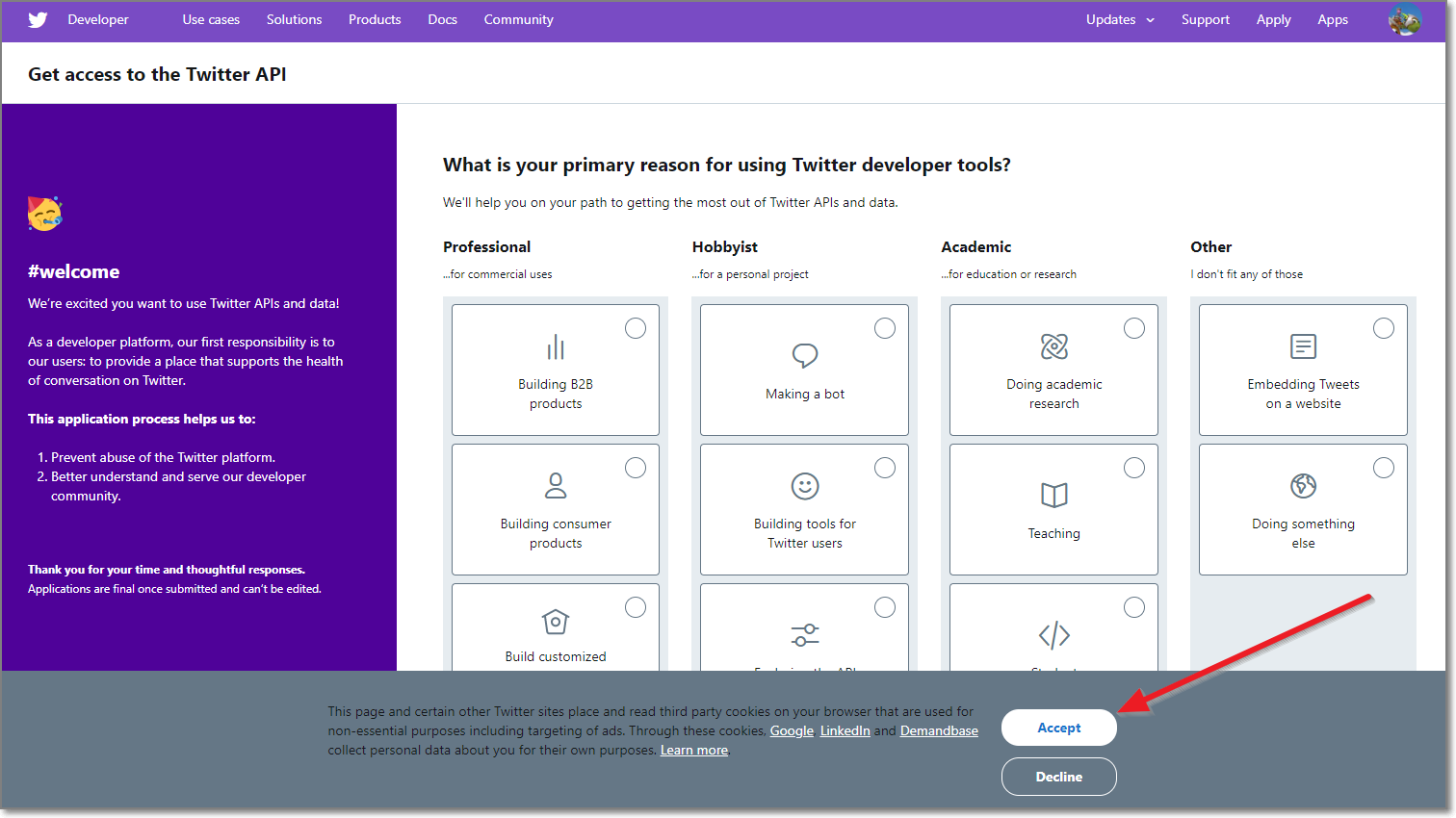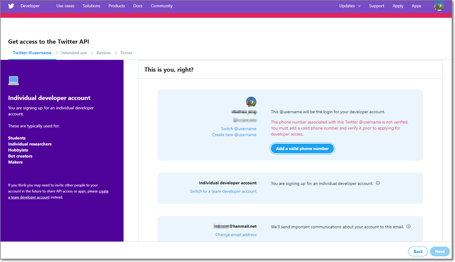 Twitter 데이터 또는 API 사용 계획 제출