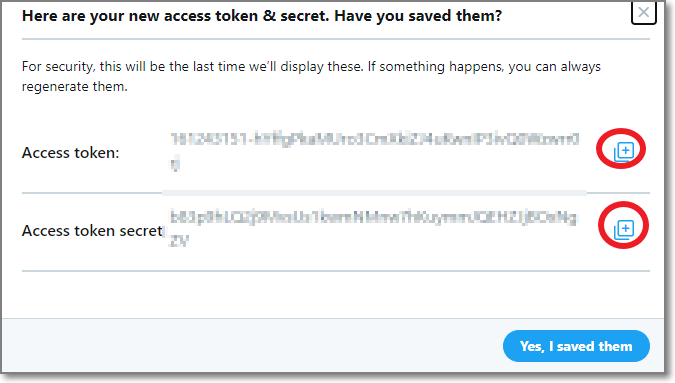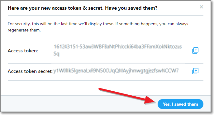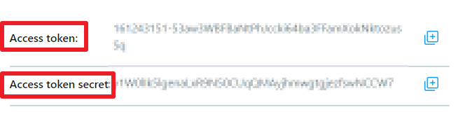 Generate해서 나온 Access token 값과 Access token secret값을 역시 잘 저장해놓습니다.
