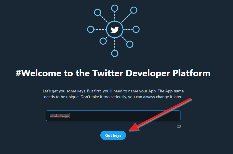 컨펌을 누르면 바로 개발자 페이지로 로그인을 시도합니다. 계정명과 패스워드를 입력하면 아래와 같은 화면이 나오게 됩니다. 적당한 앱이름을 쓰고 Get keys를 누릅니다.