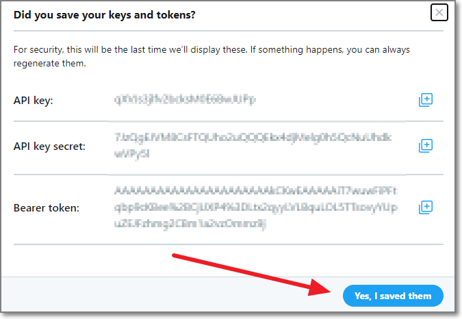 한번 더 키 값들을 저장했냐고 물어봅니다. 모두 메모장에 저장을 해놓은 후에 Yes, I saved them을 누릅니다.